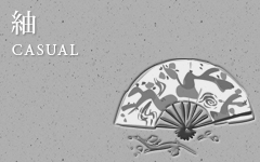 家紋有り(1つ・3つ・抜き・縫い)の無地までが、一応、和装の中でのフォーマル、合わせる帯も普通は"袋帯"となります。そして、紋無しの色無地からがカジュアルとなり、帯も"名古屋帯"を合わせるのが普通となります。